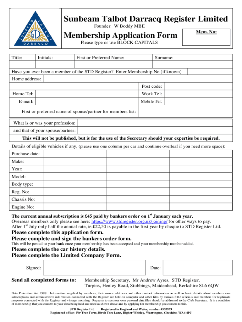 Founder: W Body Membership Application Former. No:Please type or use BLOCK CAPITALS