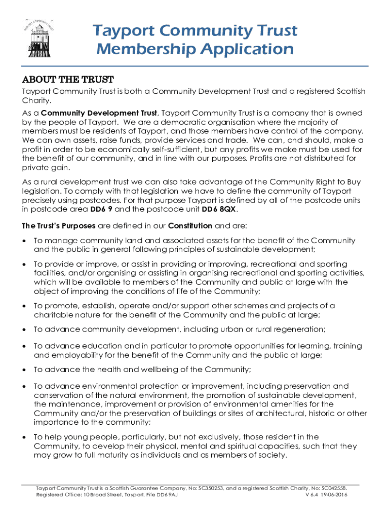 Taylor Community Trust is both a Community Development Trust and a registered Scottish