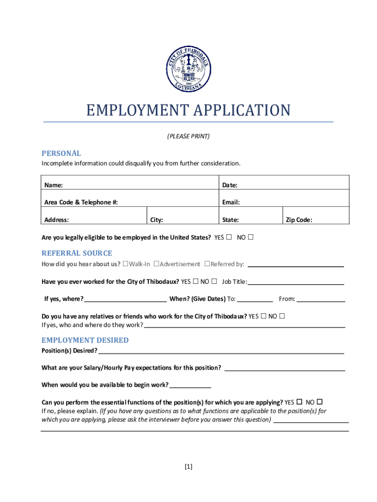 Any individual interested in applying for a job position within a company is required to fill out the employment print application-jan 2pdfdocx.