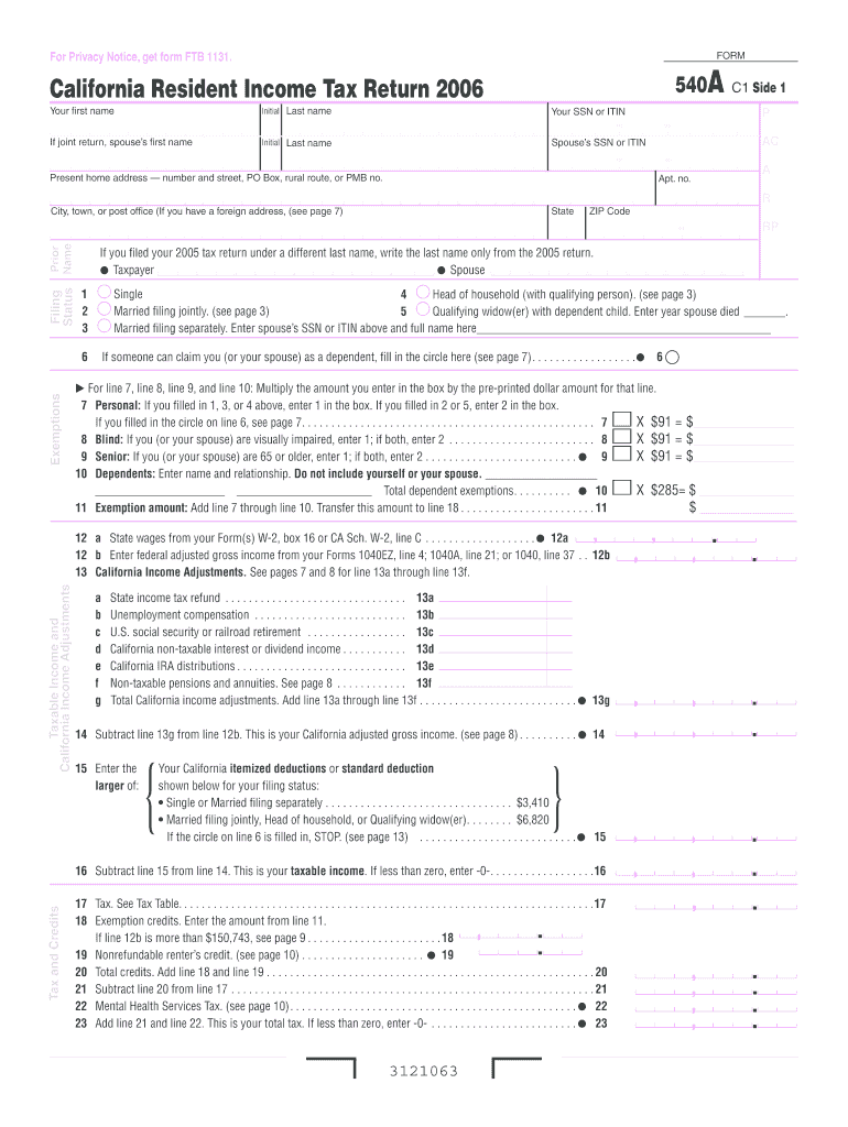 How to Fill Out the California Resident Income Tax Return 2006 540A Online