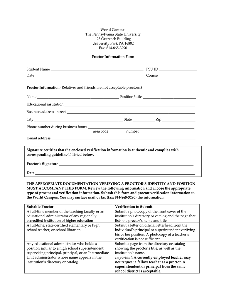 Get the free Proctor Information Form Proctor Information - stat psu