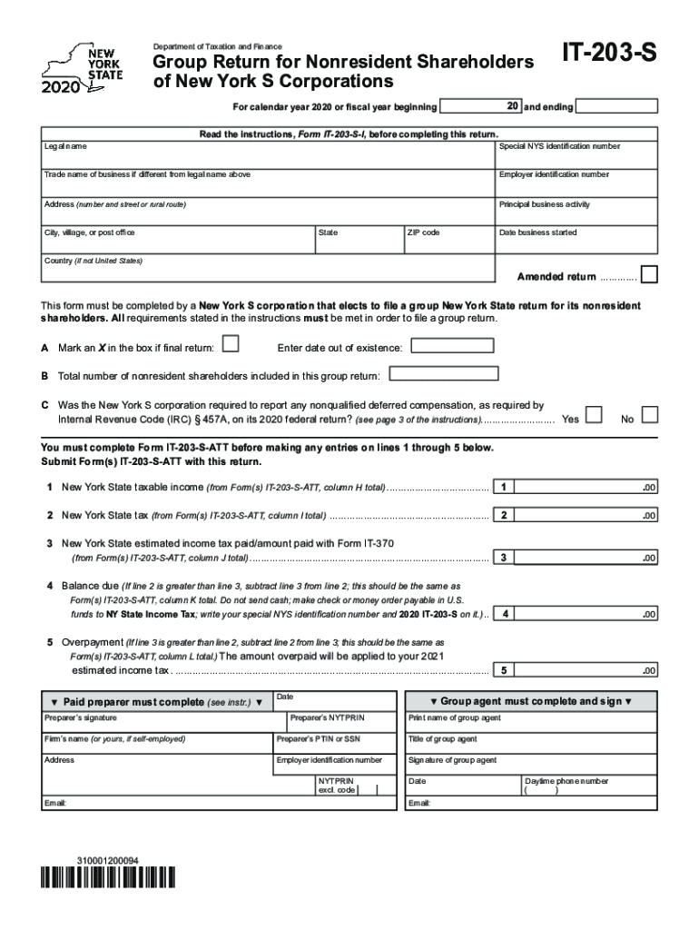of New York S CorporationsLegal nameIT203S20 and ending calendar year 2020 or fiscal year beginningRead the instructions,