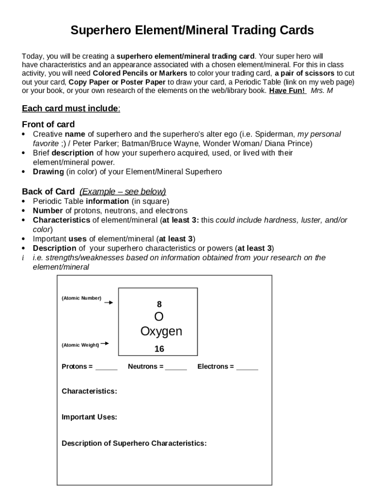 The ELEMENT SUPERHERO/VILLIAN PROJECTELEMENT SUPERHERO/VILLIAN PROJECTELEMENT SUPERHERO/VILLIAN PROJECTIt's Elemental: 15 SuperHeroes Who Can Control The Elements is a writable document required to be submitted to the specific address in order to provide some info. It needs to be completed and signed, which can be done in hard copy, or by using a certain software such as PDFfiller. This tool allows to fill out any PDF or Word document directly from your browser (no software requred), customize it according to your purposes and put a legally-binding electronic signature. Right after completion, you can easily send the ELEMENT SUPERHERO/VILLIAN PROJECTELEMENT SUPERHERO/VILLIAN PROJECTELEMENT SUPERHERO/VILLIAN PROJECTIt's Elemental: 15 SuperHeroes Who Can Control The Elements to the relevant recipient, or multiple ones via email or fax. The editable template is printable too because of PDFfiller feature and options proposed for printing out adjustment. In both electronic and physical appearance, your form should have a neat and professional appearance. Also you can save it as the template to use later, without creating a new document from scratch. All you need to do is to amend the ready form.