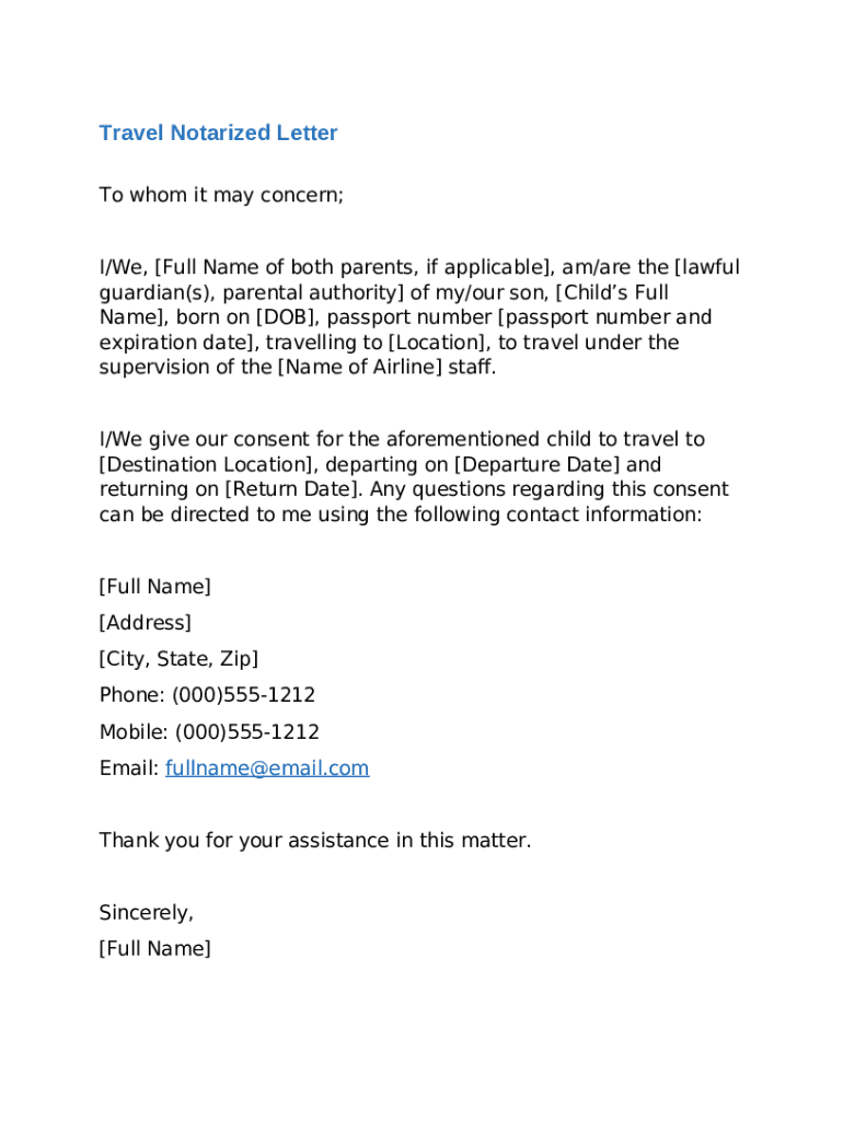 This document is essential for various reasons, including legal protection and peace of mind for parents and guardians. A Travel Notarized Letter acts as evidence that a child has permission to travel, reducing potential disputes regarding custody or consent.
