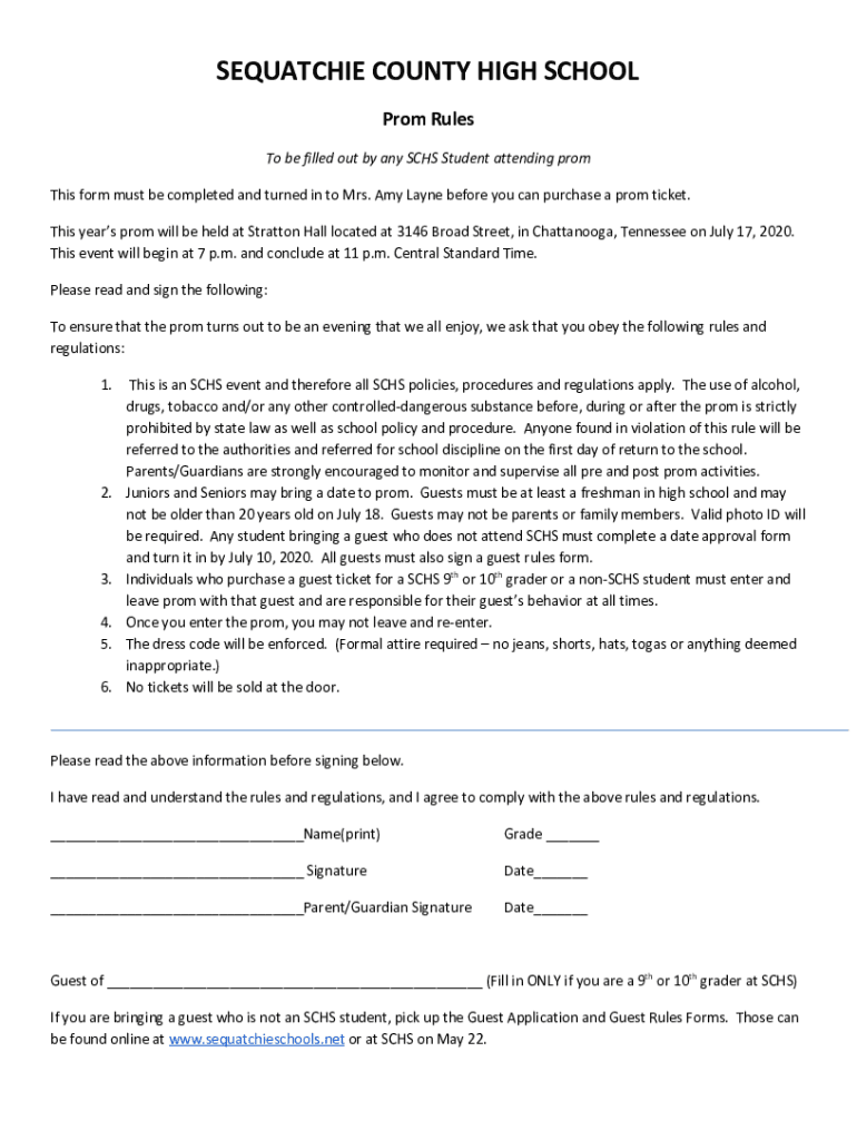This form must be completed and turned in to Mrs. Amy Lane before you can purchase a prom ticket.