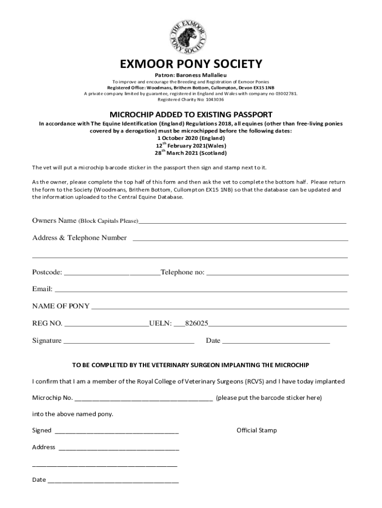 To improve and encourage the Breeding and Registration of Ex moor Ponies