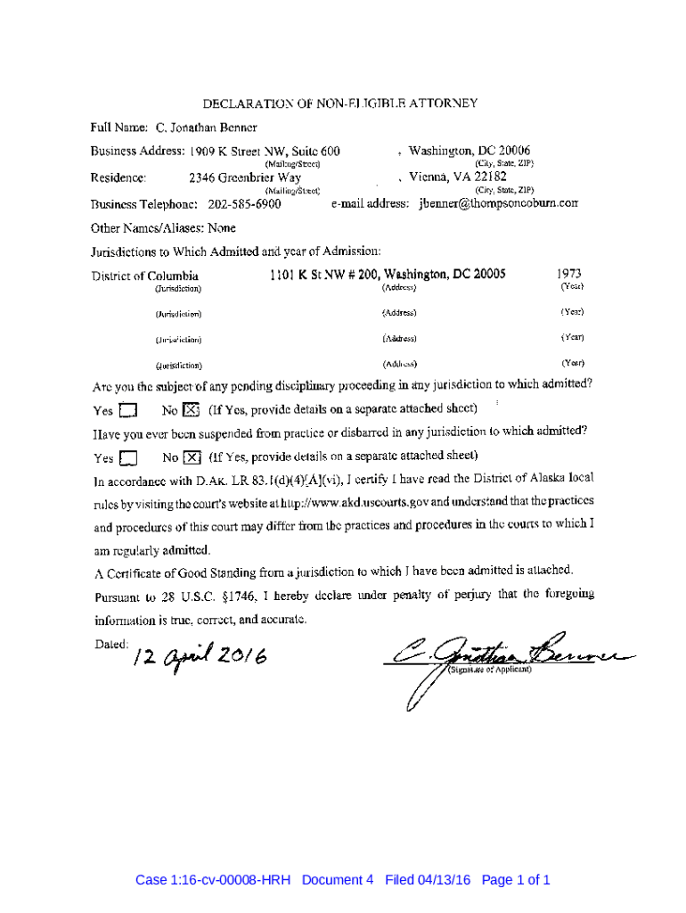 DECLARATION OFNONELIGIBLE ATTORNEY