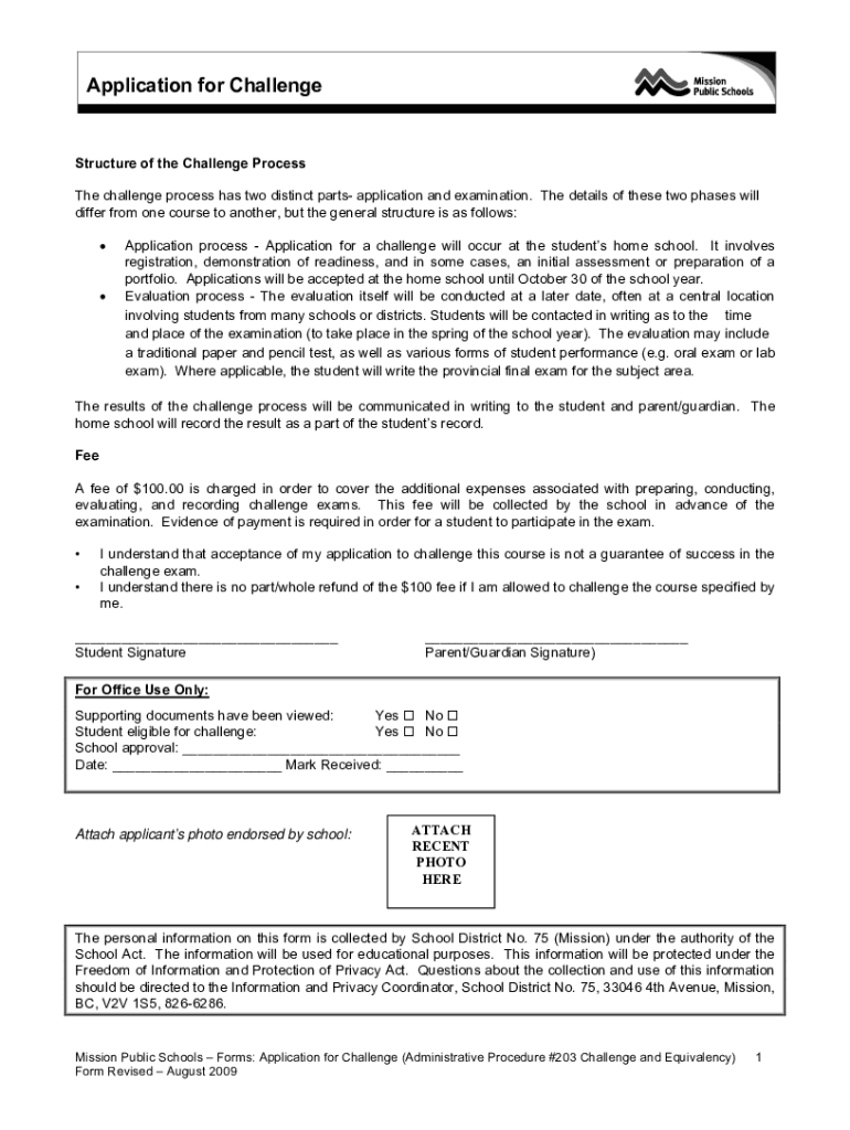 Application for ChallengeStructure of the Challenge Process The challenge process has two distinct parts application and examination. The details of these two phases will differ from one course to