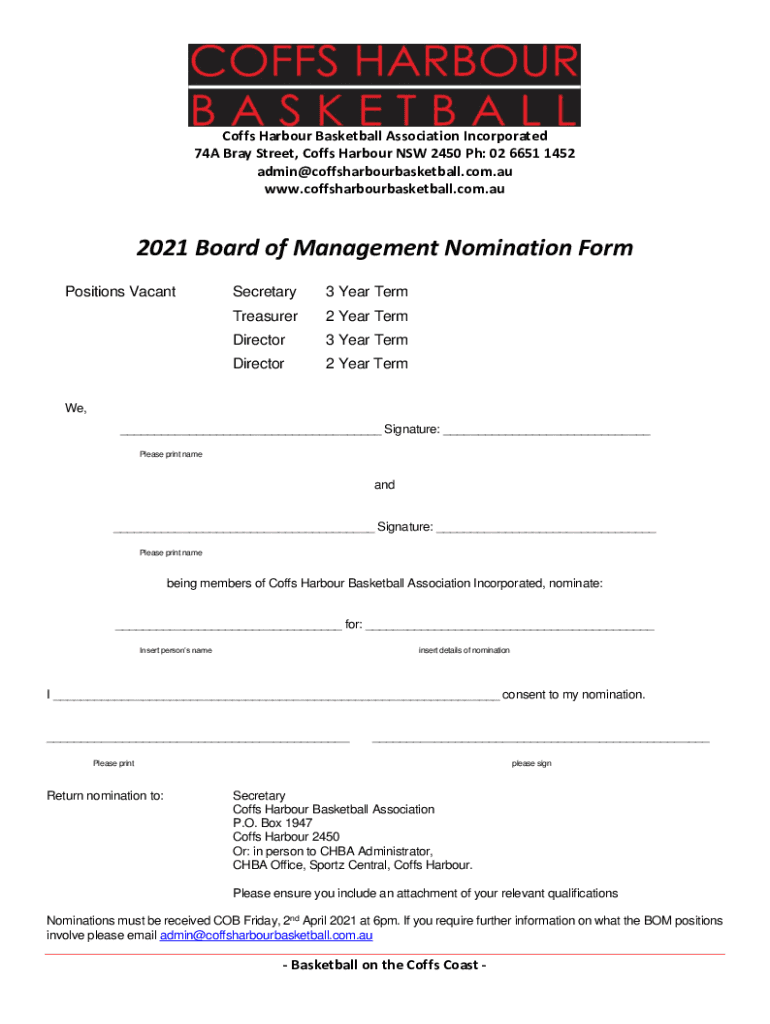 Get the free Nomination Form - COFFS HARBOUR BASKETBALL ASSOCIATION