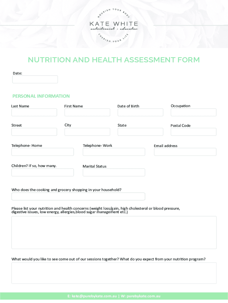 NUTRITION AND HEALTH ASSESSMENT FORM