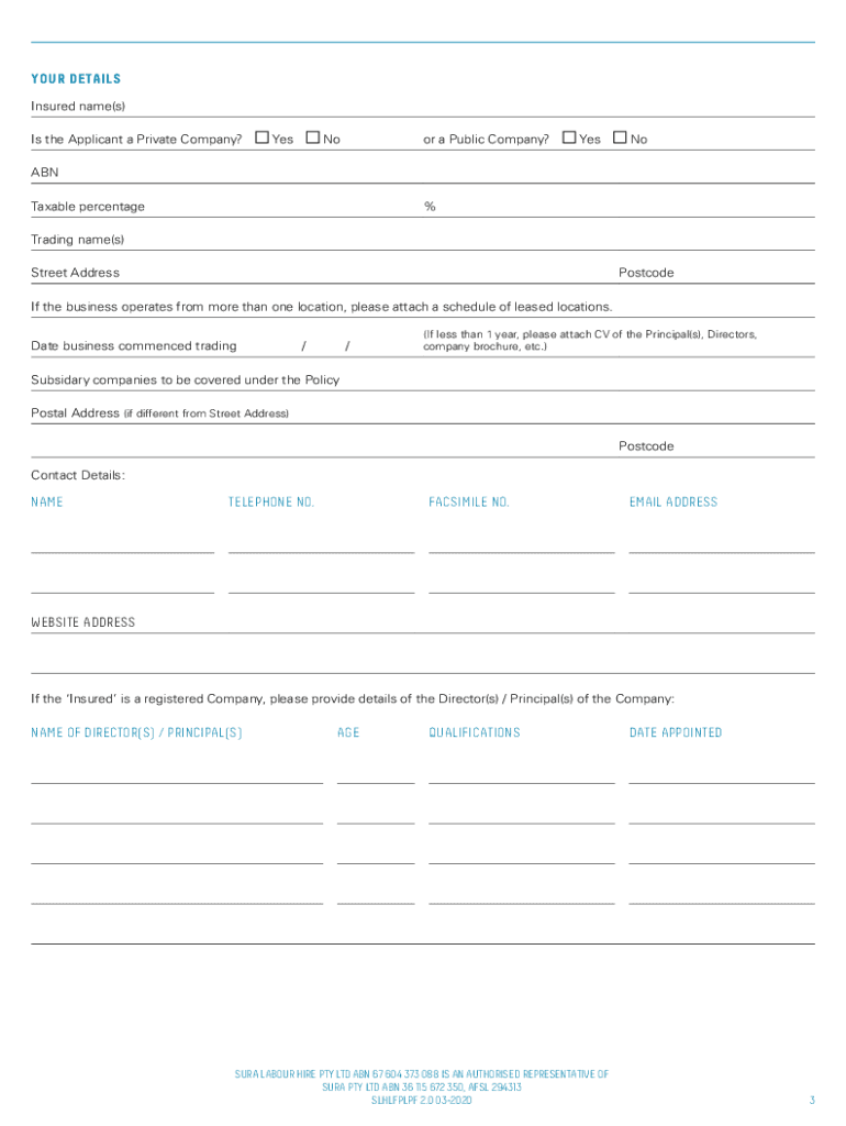 Get the free SURA LABOUR HIRE LABOUR FORCE LIABILITY INSURANCE POLICY