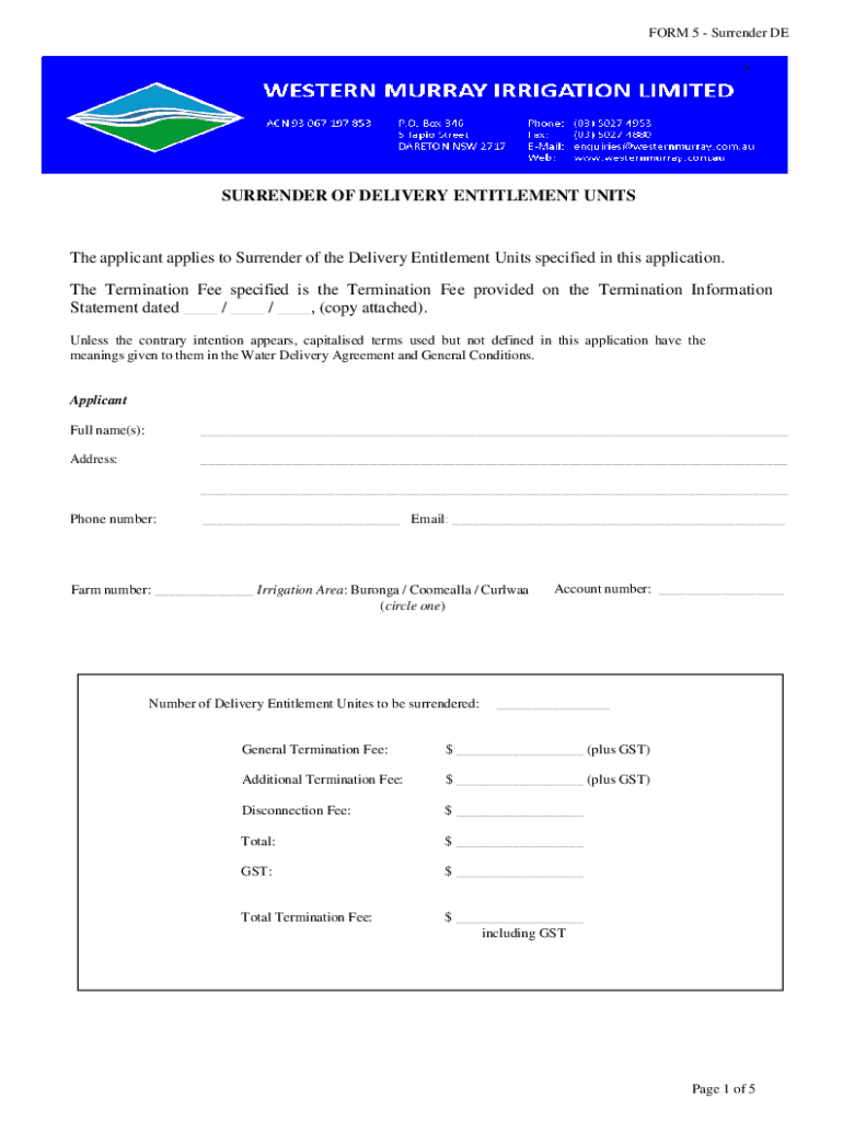 FORM 5 Surrender OF DELIVERY ENTITLEMENT Units applicant applies to Surrender of the Delivery Entitlement Units specified in this application. The Termination Fee specified is the Termination Fee