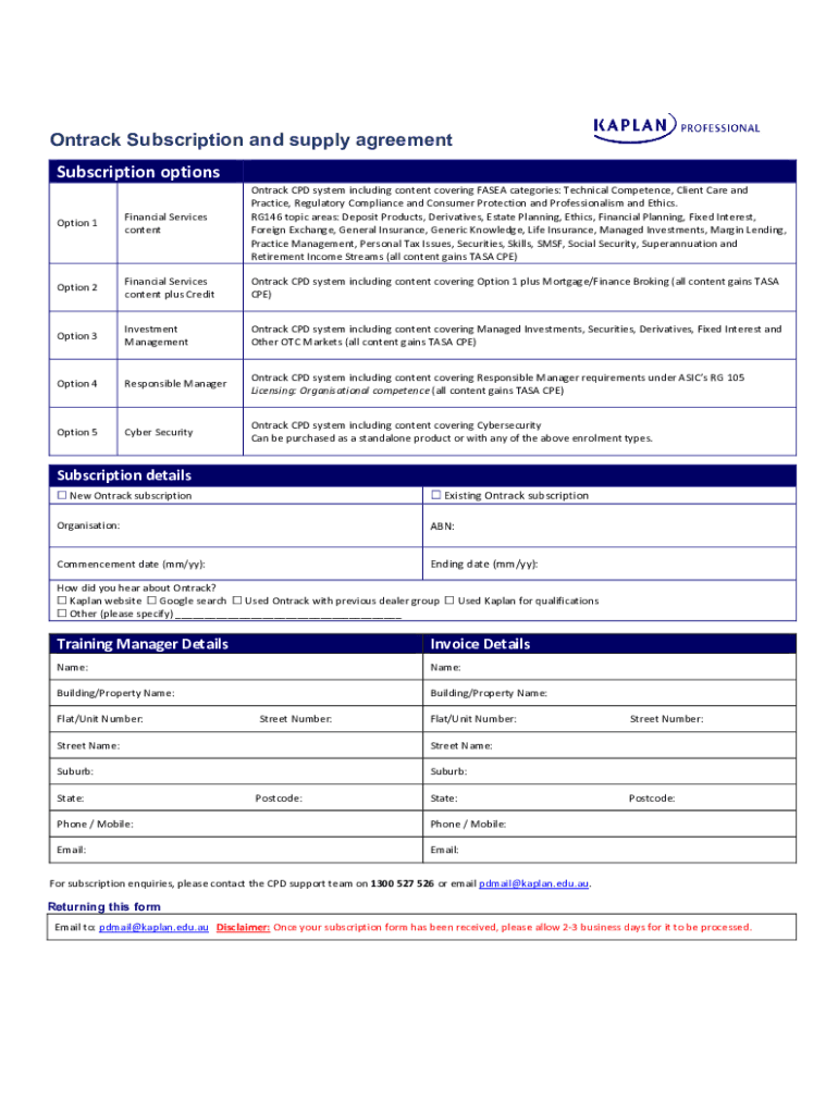 On track Subscription and supply agreement
