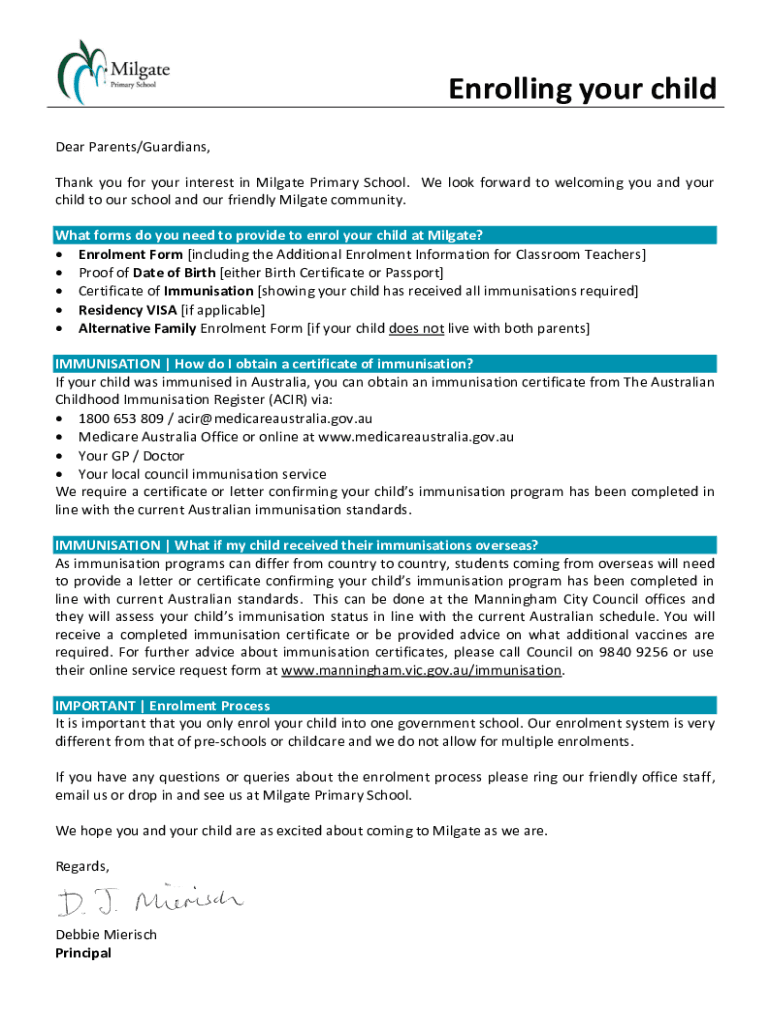 Get the free PDF Milgate PS Enrolment Form - Milgate Primary School