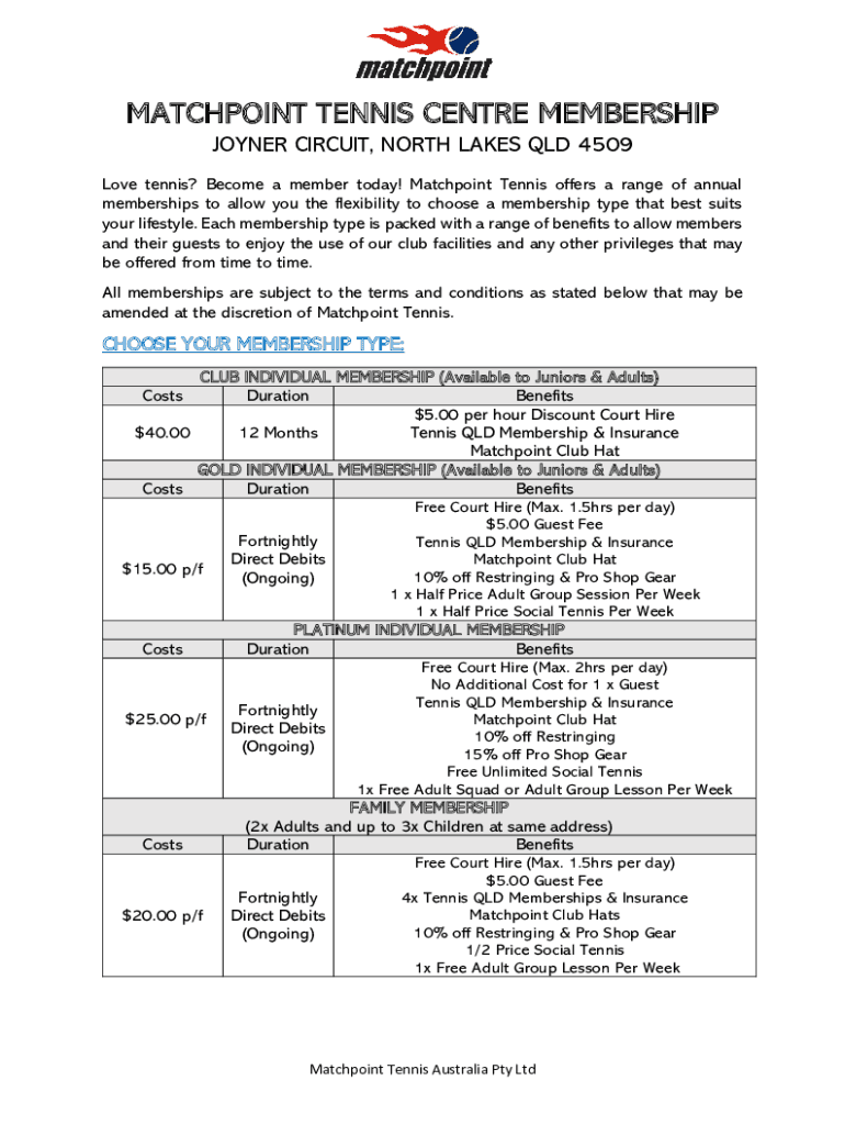Love tennis? Become a member today! Match point Tennis offers a range of annual