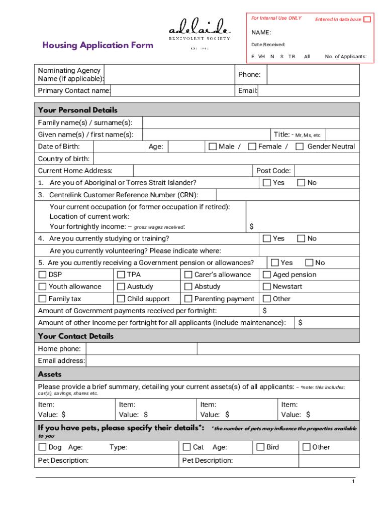 For Internal Use Unlettered in data Basecamp:Housing Application Format Received: E VH Nominating Agency Name (if applicable):Phone:Primary Contact name:Email's Ball. Of Applicants:Your Personal Details