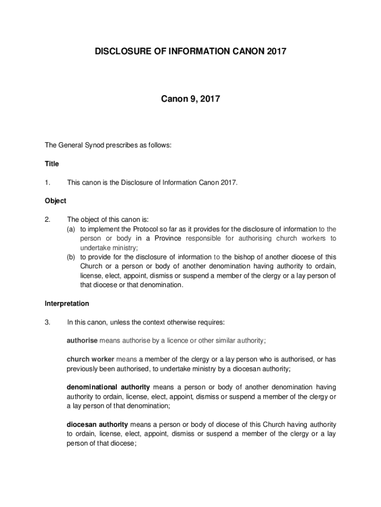 DISCLOSURE OF INFORMATION CANON 2017Canon 9, 2017The General Synod prescribes as follows: