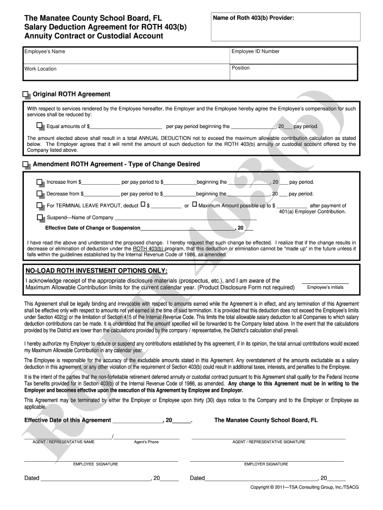 Get the free Salary Deduction Agreement for ROTH 403(b)