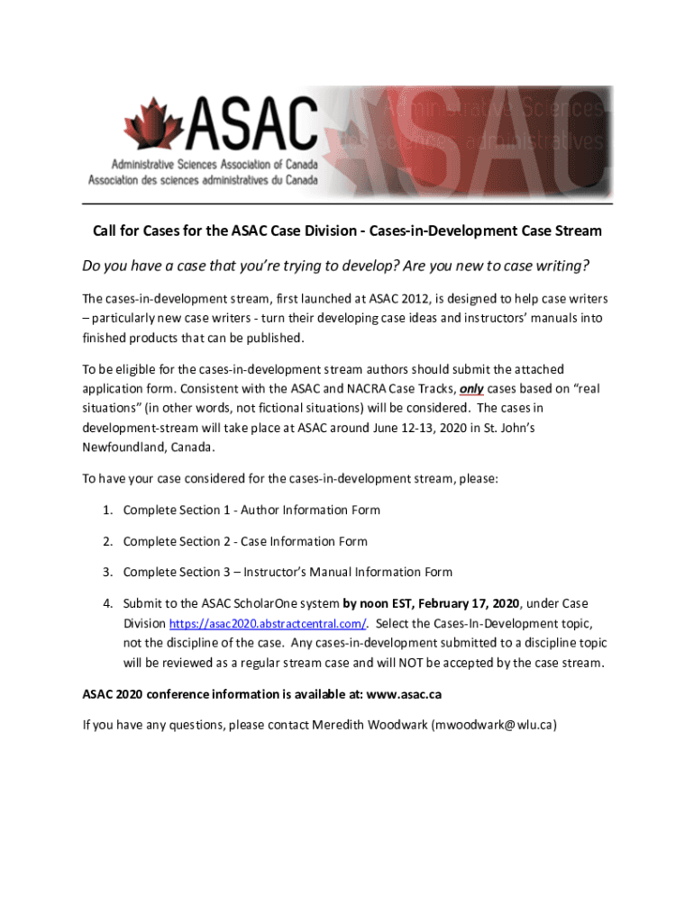 Wait for confirmation from the ASAC 2020 team regarding the acceptance of your case division.