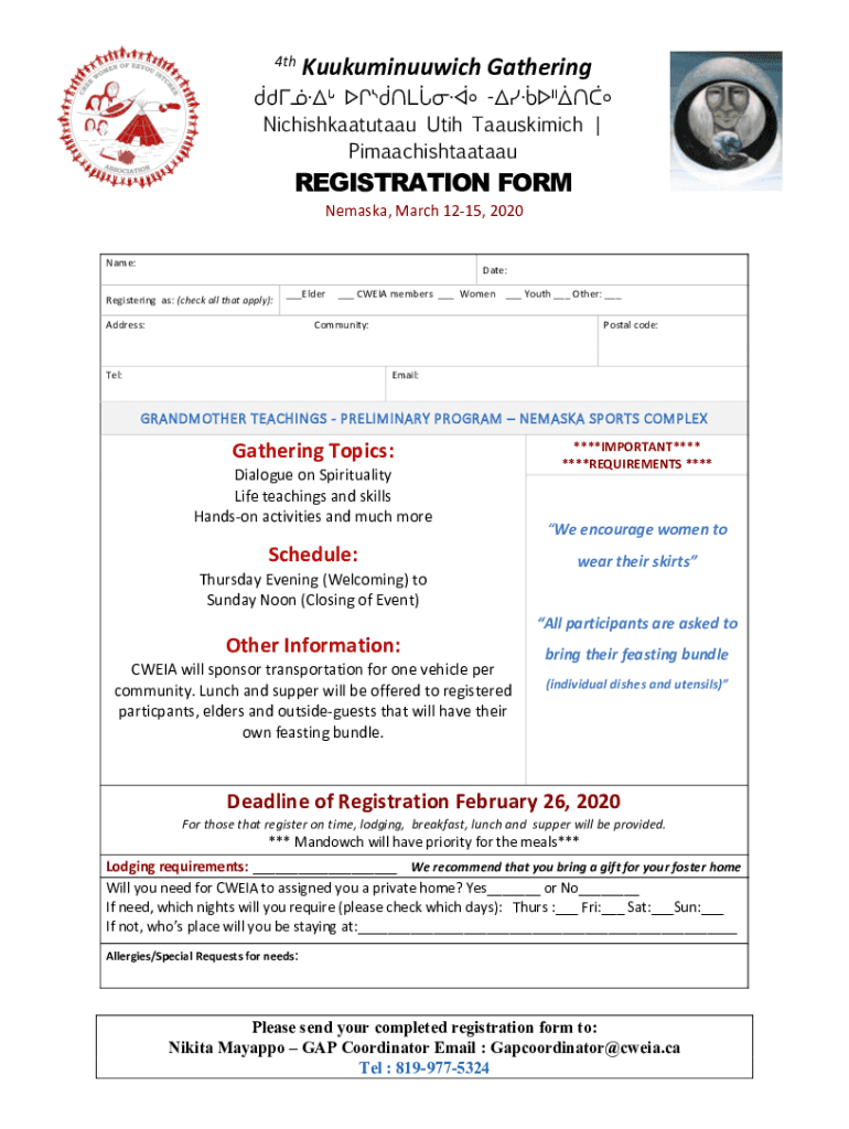 Get the free REGISTRATION FORM 4th Kukuuminuuch Gathering - FINAL1.docx