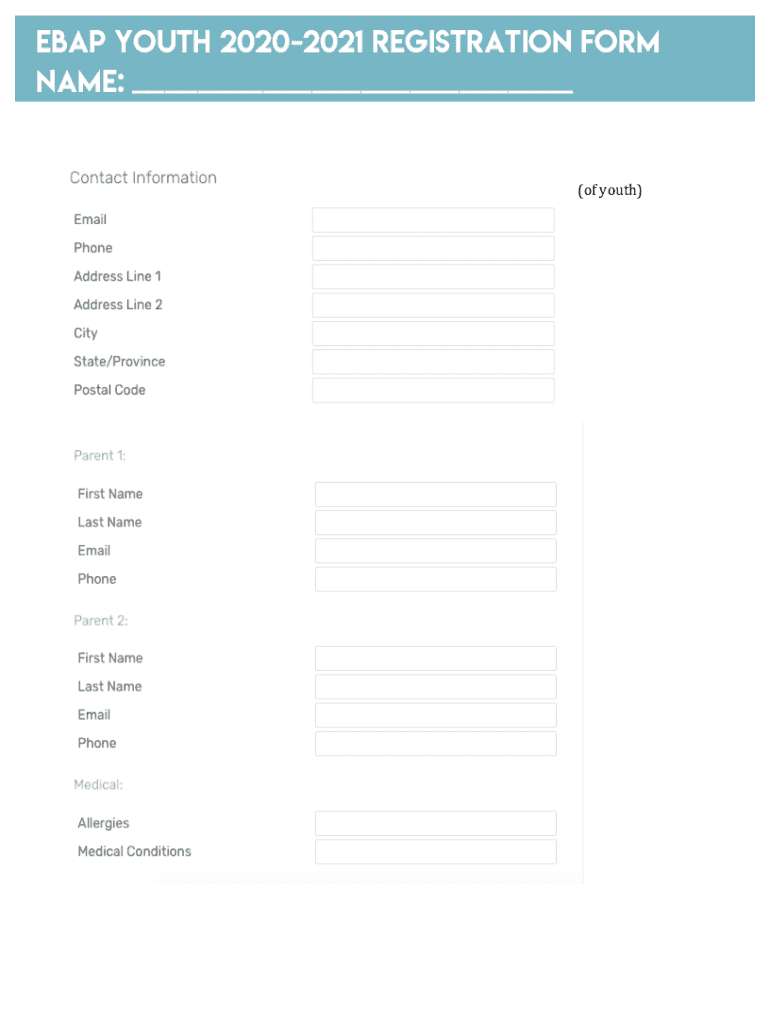 Get the free Ebap Youth Registration Form 2020-2021.docx