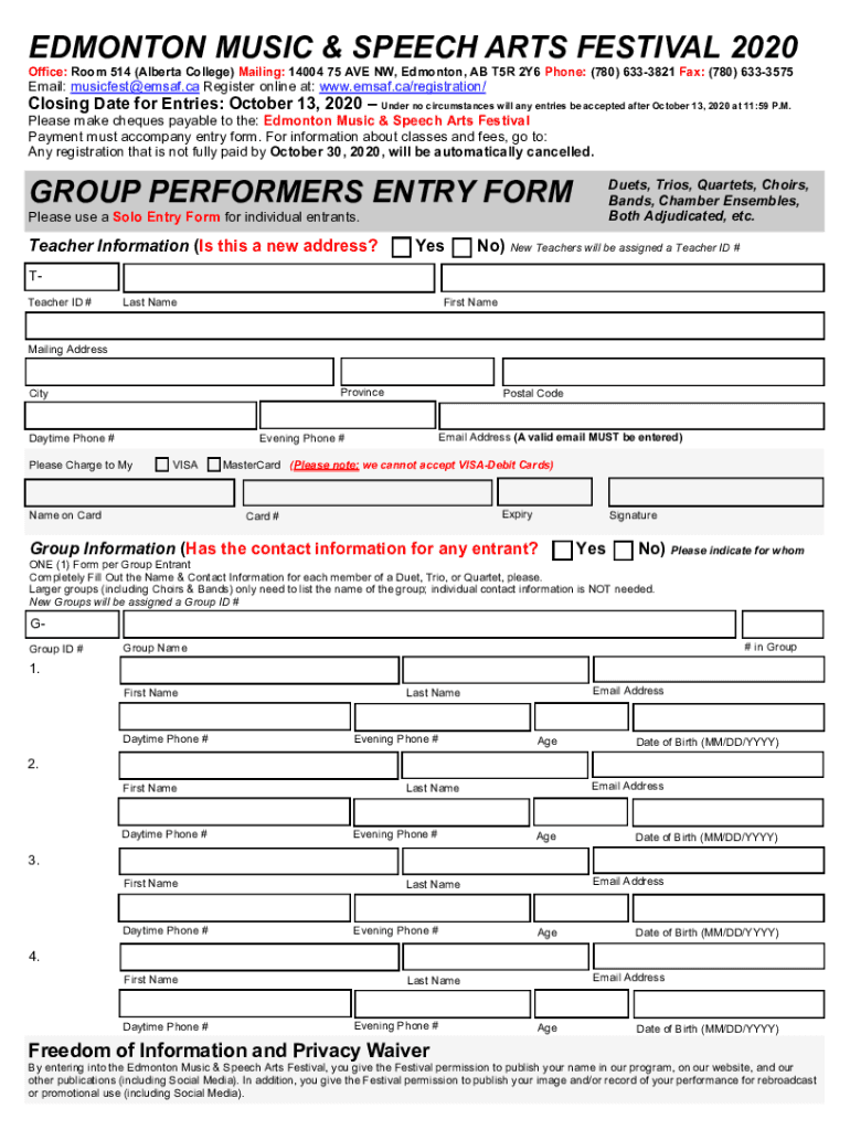 Get the free Edmonton Music & Speech Arts Festival Group Registration Form