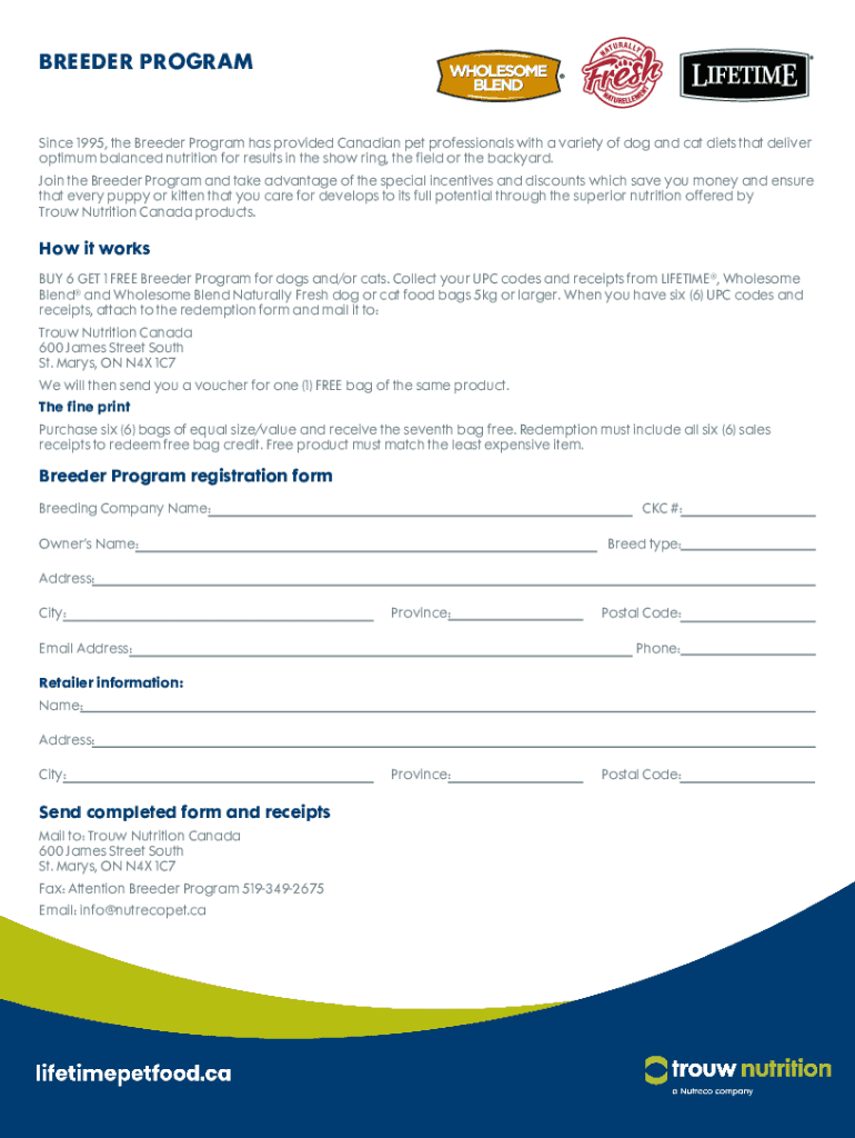 BREEDER Programming 1995, the Breeder Program has provided Canadian pet professionals with a variety of dog and cat diets that deliver