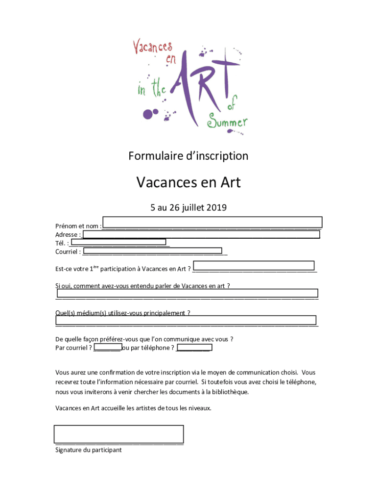 Formula ire dinscriptionVacances en Art 5 au 26 bullets 2019 Pro met not : Address : Tl. Courier : Estate vote 1re participation Vacancies en Art ? Si OUI, comment nervous extend Parler de Vacancies