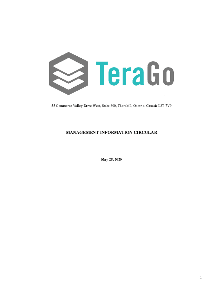 55 Commerce Valley Drive West, Suite 800, Thorn hill, Ontario, Canada L3T 7V9MANAGEMENT INFORMATION CIRCULAR May 28, 20201May 28, 2020