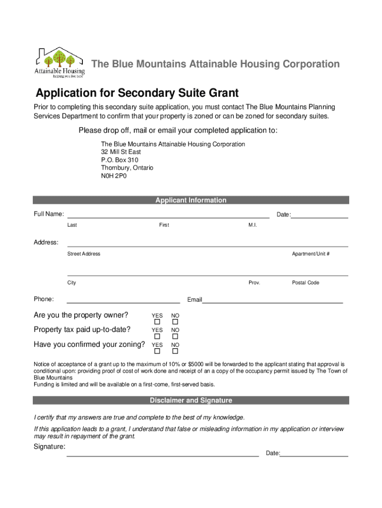 Get the free Application for Secondary Suite Grant