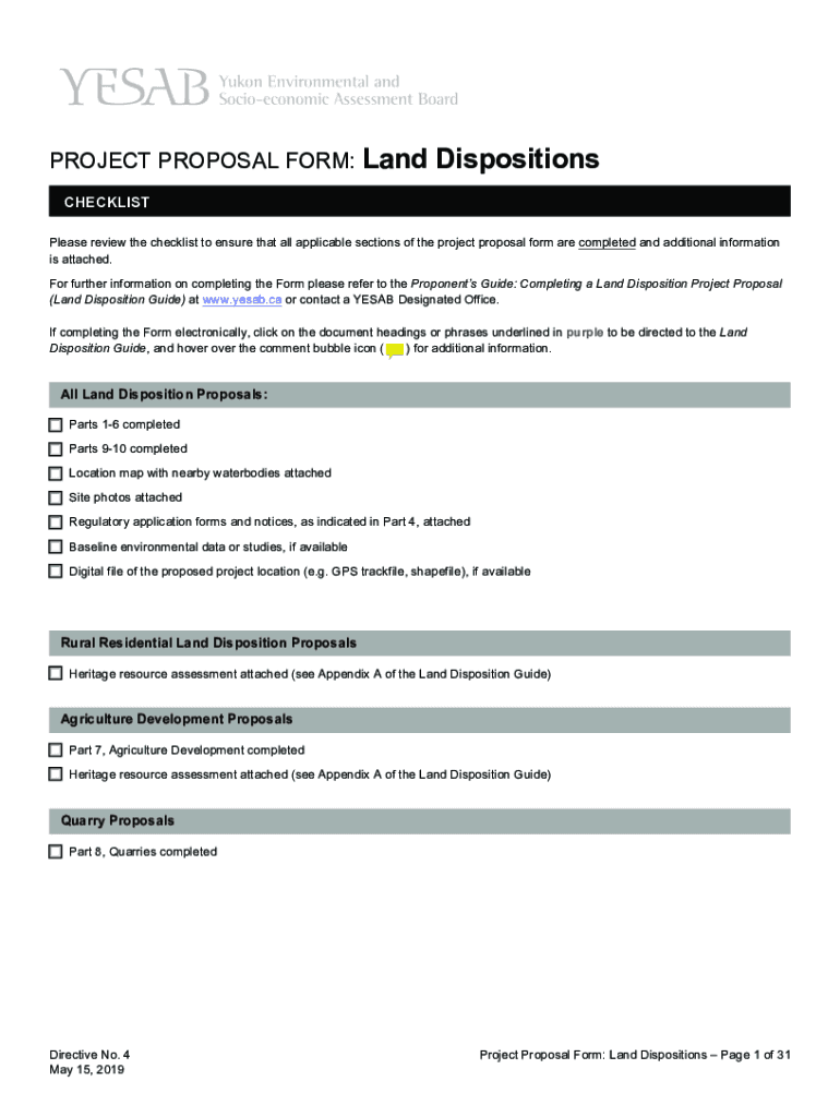 PROJECT PROPOSAL FORM:Land DispositionsCHECKLIST
