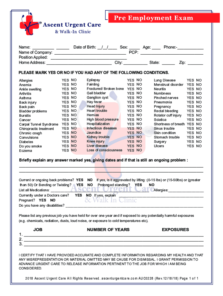 Edit your pre employment exam ascent form online