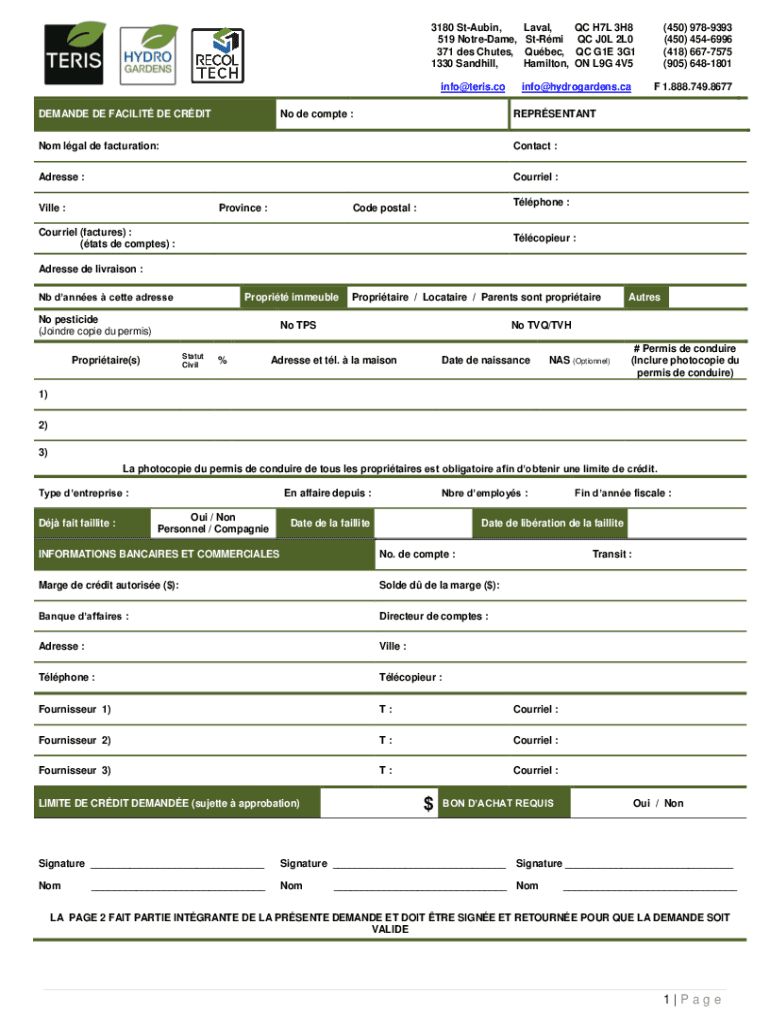 DEMAND DE FACILITY DE Credit DE compete :Laval,