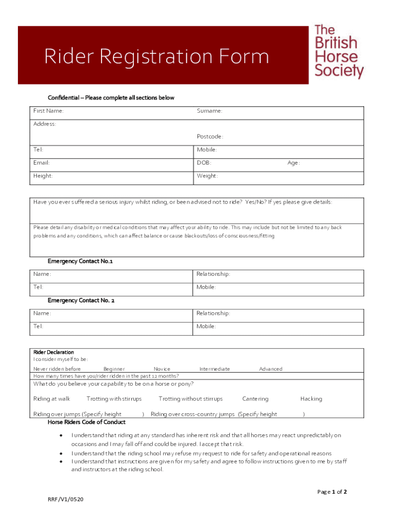 Rider Registration Form is not the form you're looking for?Search for another form here.