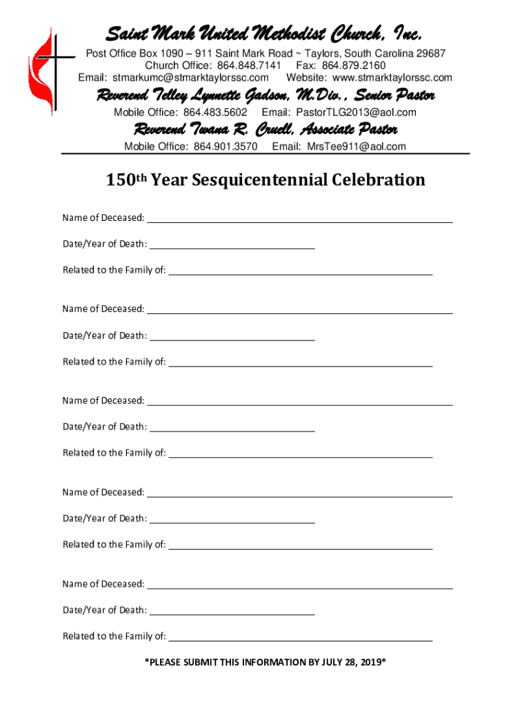 Get the free Saint Mark United Methodist Church, Inc