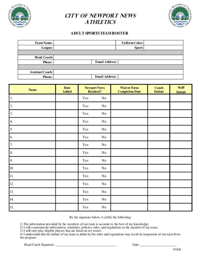 Get the free NN Adult Sports Team Roster Form - AWS
