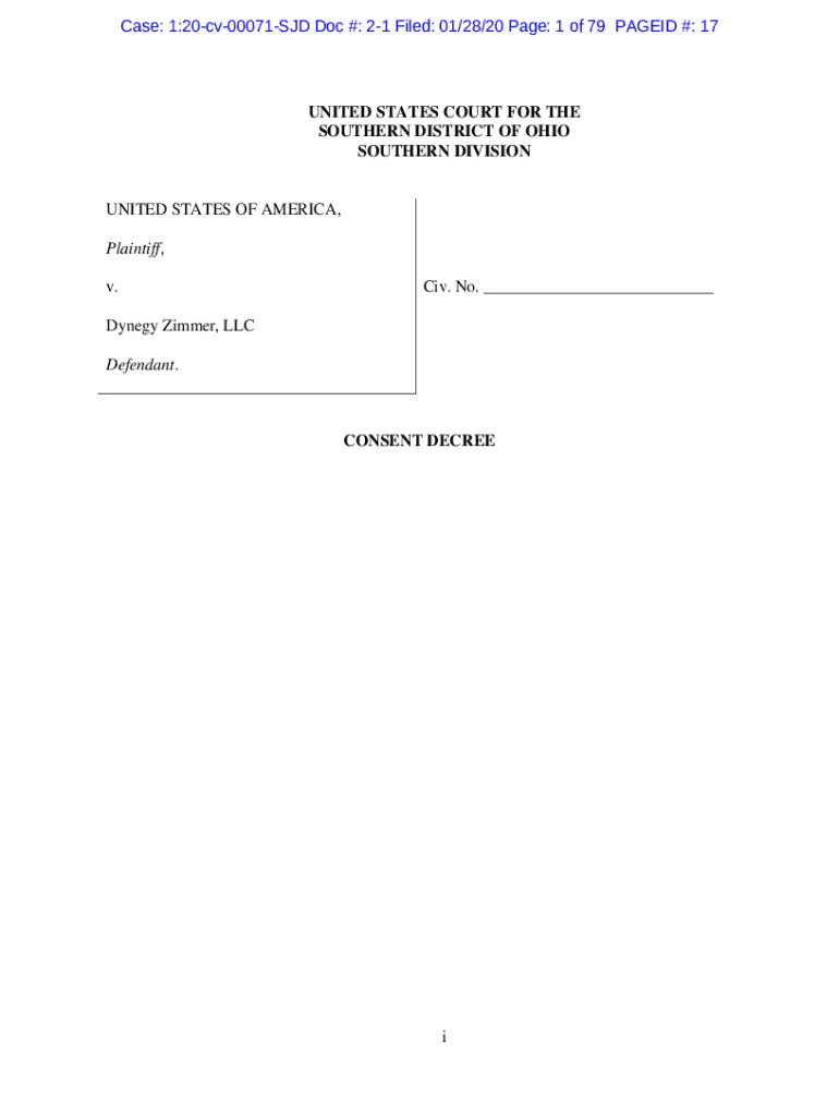 Case: 1:20cv00071SJD Doc #: 21 Filed: 01/28/20 Page: 1 of 79 PAGED #: 17UNITED STATES COURT FOR THE SOUTHERN DISTRICT OF OHIO SOUTHERN DIVISIONUNITED STATES OF AMERICA, Plaintiff, v. CIV. No. Dynegy
