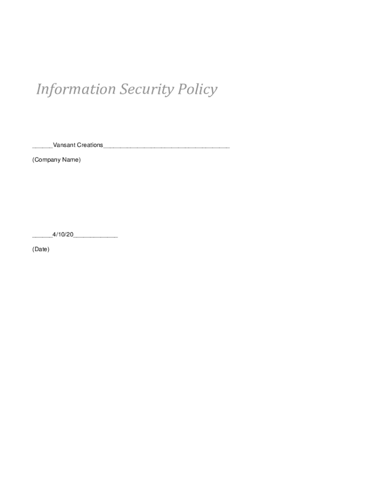 Information Security Policy Vans ant Creations (Company Name) 4/10/20 (Date)Contents 1. Introduction ....................................................................................................................................................