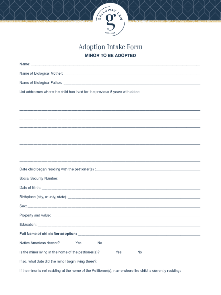 Get the free ADOPTION INTAKE FORM - bgallowaylaw.com