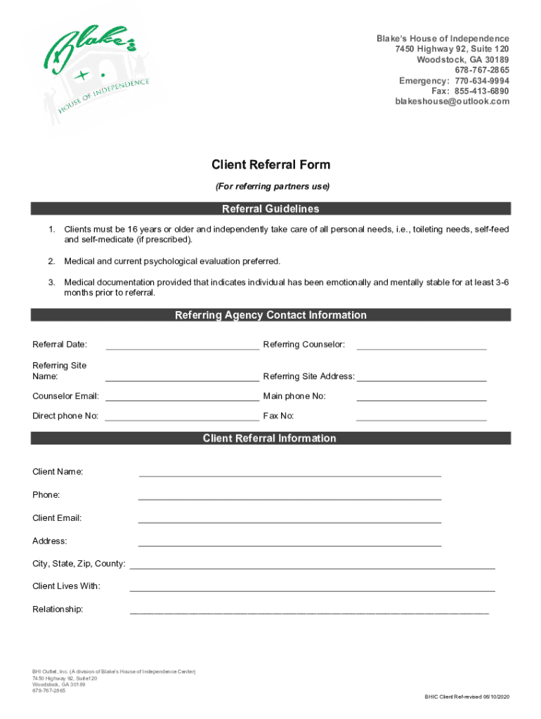 Get the free BHIC Client Referral Form-3A1 Blank.docx