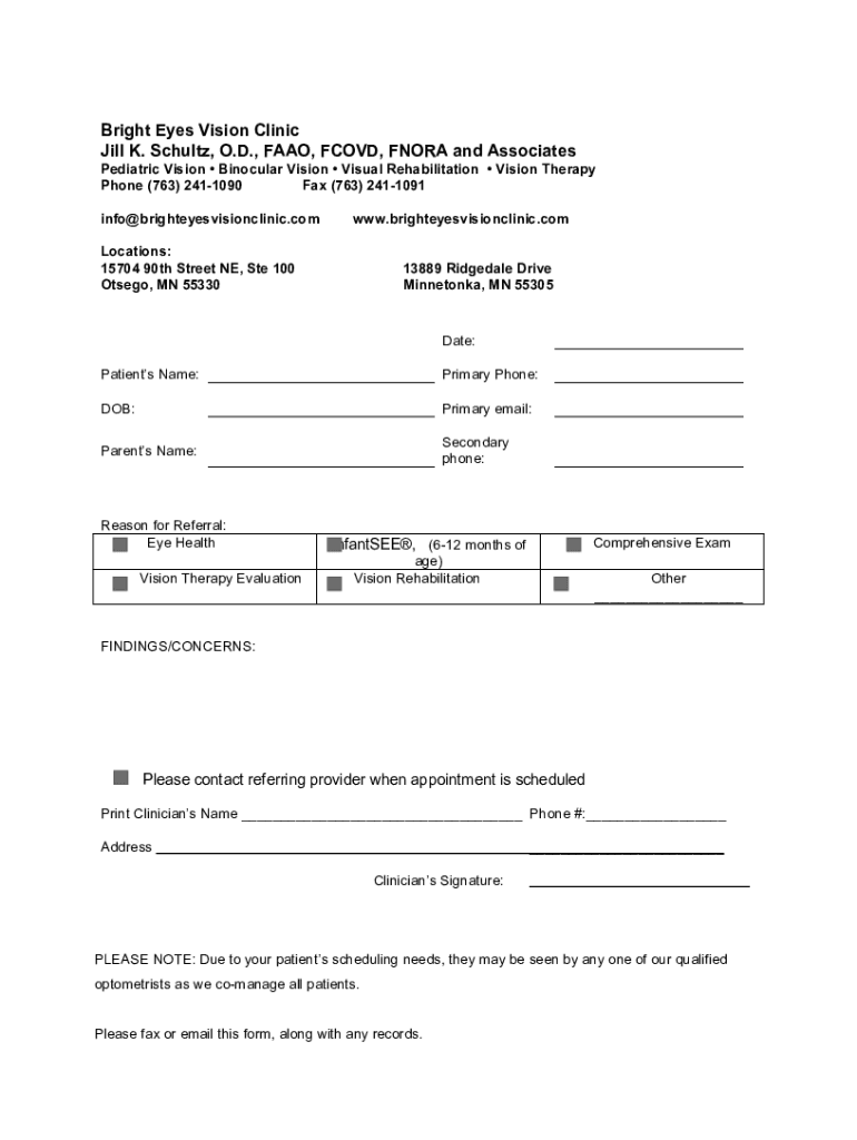 Bright Eyes Vision Clinic is not the form you're looking for?Search for another form here.