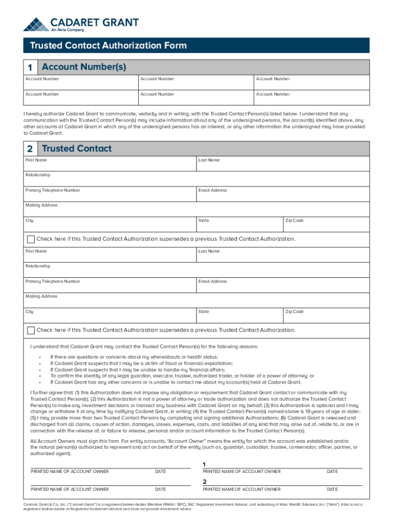 Get the free Trusted Contact Authorization Form Account Number(s) Trusted ...