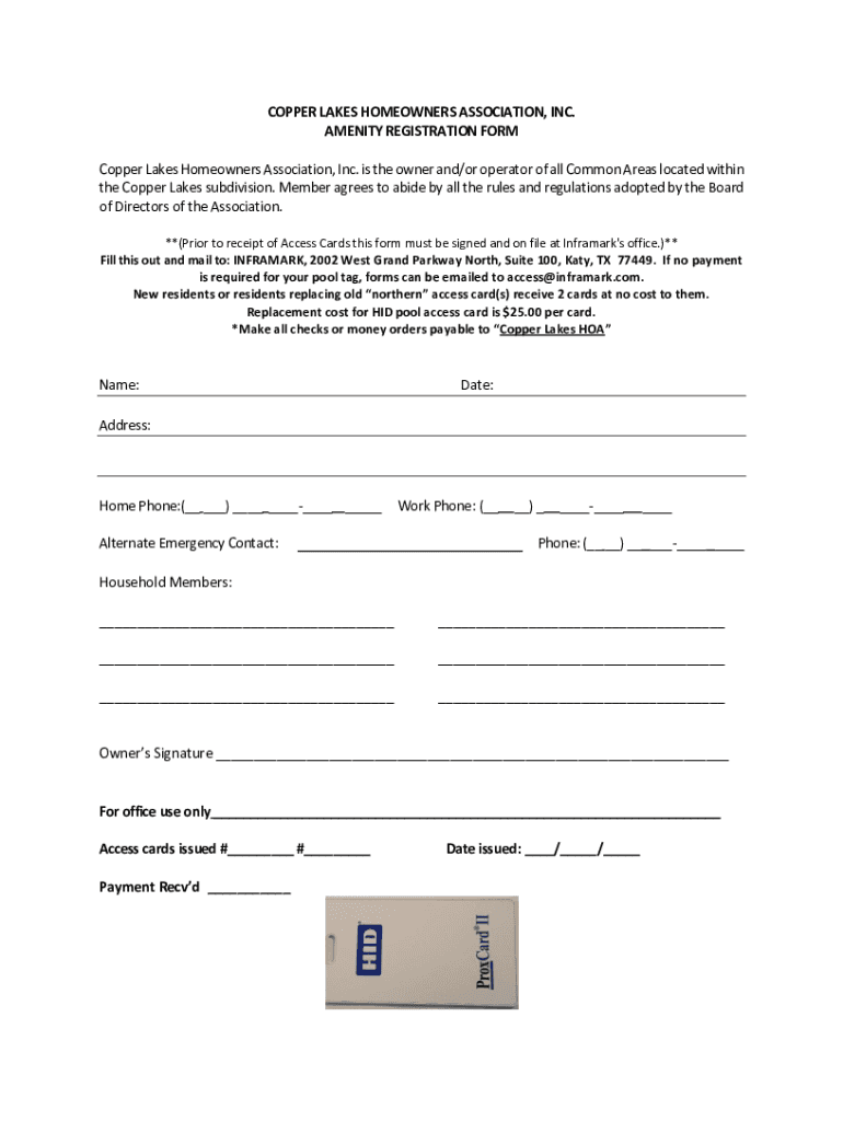 AMENITY REGISTRATION FORM