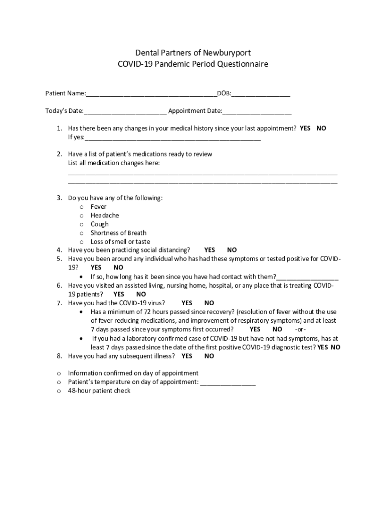 Get the free Dental Partners of Newburyport COVID-19 Pandemic Period ...