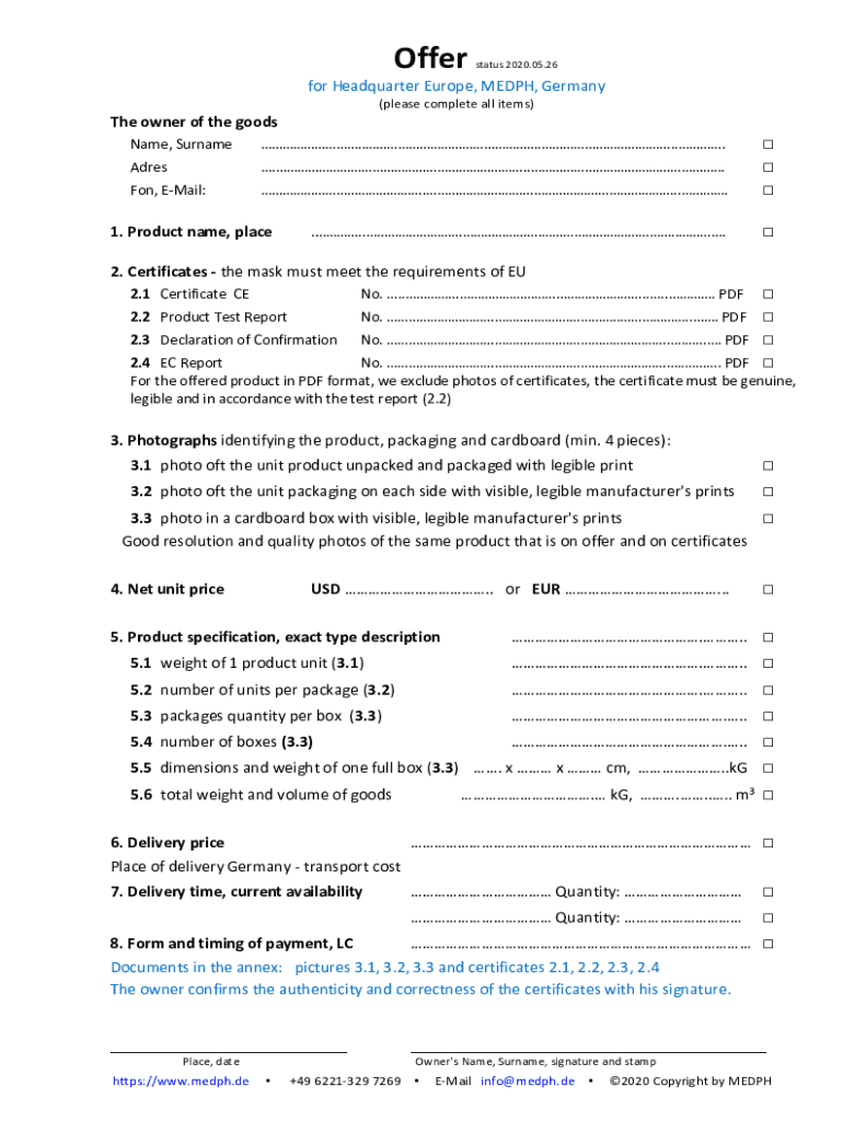 Offer status 2020.05.26for Headquarter Europe, ME DPH, Germany