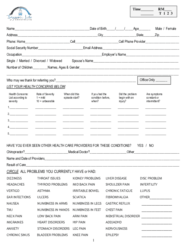 Time Name Date of Birth / / Age RM T 1 2 3Male / FemaleAddress City State Zip Phone: Home Cell Phone Provider Social Security Number Email Address Occupation Employers Name Single / Married / Divorced