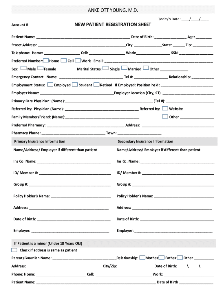 Get the free New Patient Registration Sheet - Anke Ott Young, MD