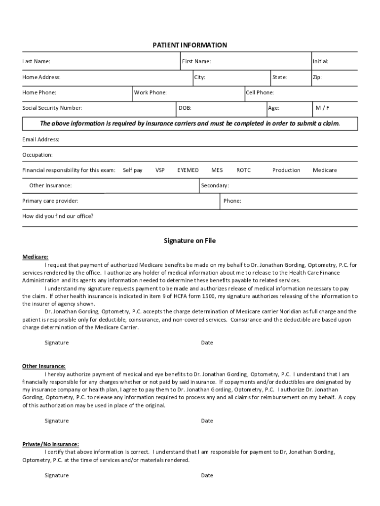 Review the filled-out patient information to ensure all details are correct and complete before proceeding with any medical procedures or treatment.