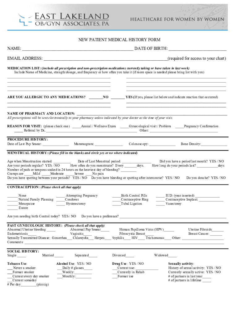 NEW PATIENT MEDICAL HISTORY FORM NAME: DATE OF BIRTH: EMAIL ADDRESS: (required for access to your chart) MEDICATION LIST: (include all prescription and nonprescription medications currently taking