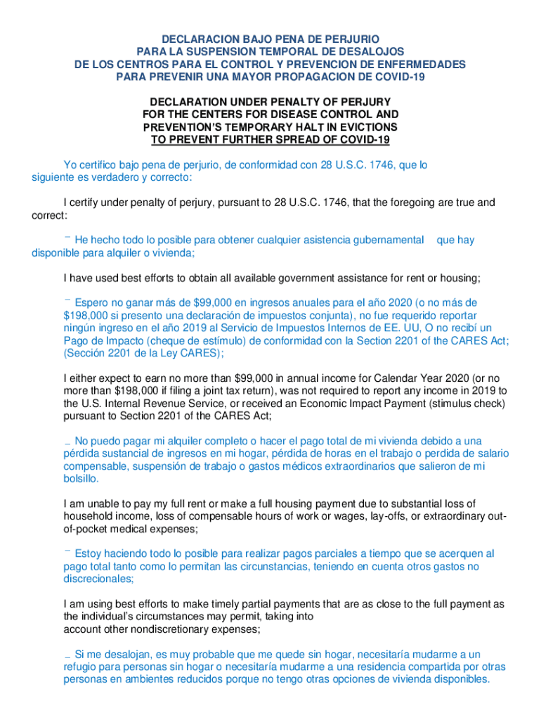 Get the free DECLARACION BAJO PENA DE PERJURIO PARA LA SUSPENSION ...
